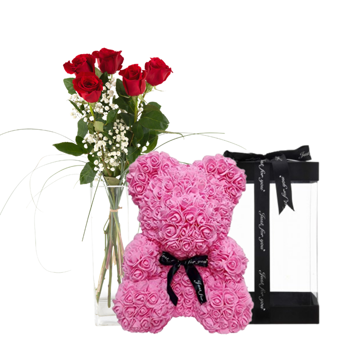 Una rosa e delle decorazioni vintage unite in uno splendido vaso di terracotta artigianale.